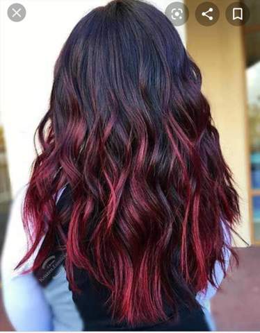 Ombre Haare Mit Schwarzem Ansatz Und Ubergang In Rot Ombre Haare Haarfarben Ombre Haare Farben