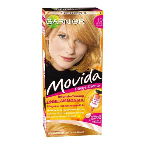 Wenn du deinem Blond einen bestimmten PastellUnterton geben möchtest, kannst du ein wenig Farbe deiner Wahl mit viel Spülung mischen und so einen tollen Effekt erzielen Um Gelbstich zu entfernen oder deine weißblonden Haare etwas ins Grau zu mattieren, kann der Ton Lilac * helfen, gerne auch in Kombination mit dem White Toner *. AvivaMed ist Ihre Onlinedrogerie mit einem ständig wachsenden Angebot an Drogerieartikeln und Medizinprodukten Ursprünglich spezialisiert auf Pflegeprodukte für Inkontinenz, wie TENA oder Hartmann, und enterale Ernährung, wie Fresubin oder Fortimel, erweitern wir unser Sortiment in den letzten Jahren kontinuierlich um Drogerieartikel des täglichen Bedarfs. Garnier Movida Nr 10 Goldblond lässt das Haar in einem goldschimmernden BlondTon mit leuchtenden Reflexen erstrahlen Die IntensivTönung ohne Ammoniak für einen angenehmen Duft verleiht dem Haar mehr Glanz und ausdrucksstarke Leuchtkraft für bis zu acht Wochen lang Sogar graue Haare werden schonend abgedeckt, ohne erkennbaren Ansatz.