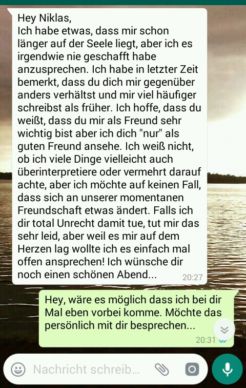 ( also ich habe ein riiesiges Problem, denn ich glaube, dass ich mich in meinen besten Freund verliebt hab!. Liebe ich meinen besten Freund/meine beste Freundin Wir haben uns mal in unserem desiredForum umgehört, was ihre Userinnen an ihrem Freund so lieben und was sie entsprechend auf eine solche Dinge, die ich an dir LiebeListe packen würden Als Konsens kann man diese zehn Punkte zusammenfassen, die von den Leserinnen besonders oft genannt. Hey Ich habe mal kurz eine wichtige Frage Die Frage wird für euch absolut banal sein, aber ich bin gerade unsicher und habe Angst, meinen Freund irgendwie zu "hintergehen" Ich hatte mal einen besten Freund, und das 4 Jahre lang Wir waren uns sehr wichtig und unsere Freundschaft war absolut.