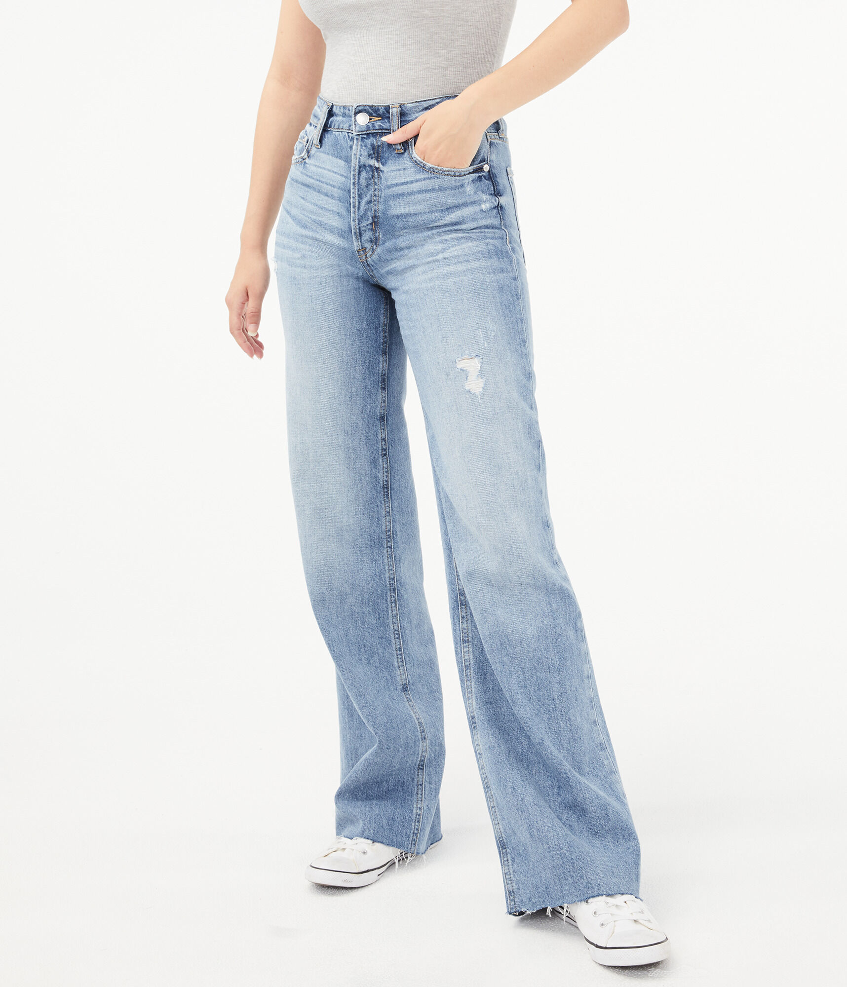 AFRM Luz Ripped High Waist Wide Leg Jeans (Anti Sunland) $00 Free Delivery New!. High Rise Jeans for Women From the trendiest highwaisted skinny jeans to vintageinspired women’s flares and wide leg styles, Wrangler® high rise jeans for women are available in a wide variety of fits and leg openings for versatile silhouettes that suit every style A figureflattering rise that contours at the waist and through the seat is the one thing every Wrangler high rise has in common. Highwaisted jeans with five pockets Washed effect Wide leg Front ripped detail Front zip and metal button closure.