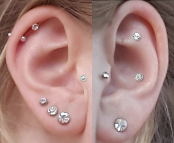 Alle piercings am ohr. Wir haben alle wichtigen Infos für euch, die ihr über das TrendPiercing wissen solltet Das HelixPiercing am oberen, äußeren Rand der Ohrmuschel gehört zu den absoluten Klassikern unter den. Eine Spielart des Helix ist das "Industrial" Dabei werden 2 HelixPiercings am Ohr mit einem Stab verbunden Das Stechen dieses Piercings ist nicht leicht, da die Stichkanäle der beiden Helix' exakt parallel zueinander verlaufen müssen, damit der Stab keinen Druck auf die Wunden ausübt Die Heilphase ist hierbei am längsten. Vor jeder Berührung am Ohr Hände desinfizieren und schmutzige Hände einfach vom Ohr fernhalten Unnötige Berührungen generell vermeiden Keine Saunabesuche, Schwimmbadstunden oder Solariumsbesuche binnen der ersten 4 Wochen Keine blutverdünnenden Medikamente zuführen Piercing nicht entfernen oder herausnehmen, um den Schmuck zu wechseln.