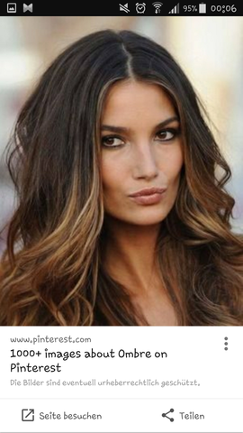 Teilen Sie die Haare vertikal auf und lassen Sie das untere Teil ungefärbt Ansonsten gilt auch hier, von unten nach oben färben Sie können aber auch ohne die Haare aufzuteilen einfach wahllos die Strähnen färben Tipp Hier können Sie wenige Highlights machen, um einen natürlichen Effekt zu erzielen. Deckhaar färben Zu guter Letzt färben wir das Deckhaar Hier solltest du die Highlights wirklich nur sehr fein ziehen Sehr schön sieht es aus, wenn du dein Gesicht rahmst (sog Face Framing) Dafür färbst du je links und rechts die vorderste Strähne Hier kannst du mit der Farbe auch etwas höher ansetzen. ProduktLoréal Paris Ombré (für dunkelbraune Haare)Schnitt iMovieMusik iMovieKisses Hann.